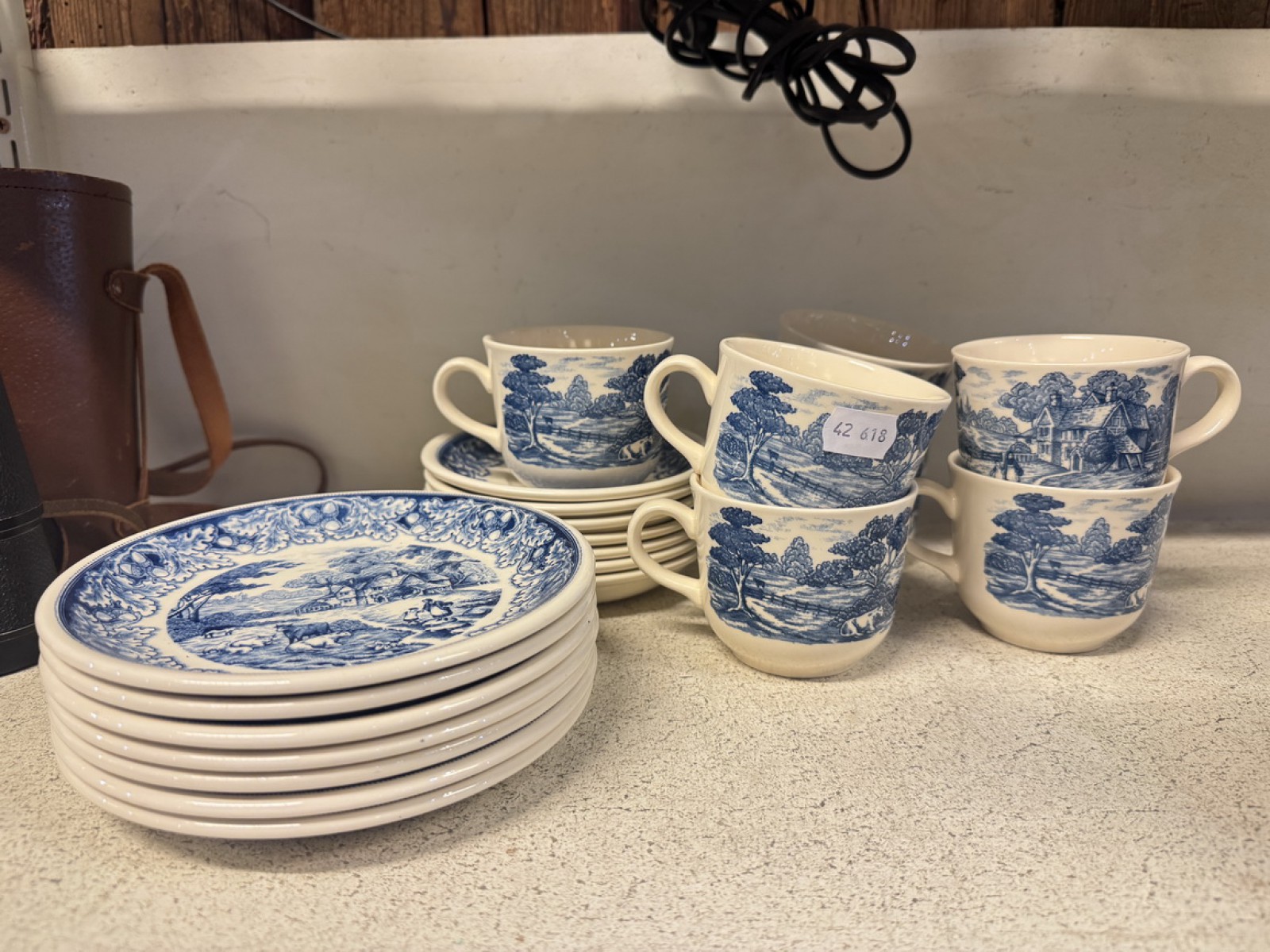Engelska tekoppar med fat och assietter